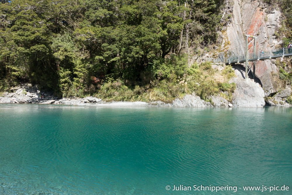 Den Freitag haben wir genutzt um uns die schönen Plätze anzusehen, an denen wir einen Tag zuvor nur achtlos vorbei gefahren sind. Angefangen haben wir mit den „Blue Pools“. Ein Fluss, gespeist durch eiskaltes Gletscherwasser, glasklar und mit einer intensiven blau Färbung.
