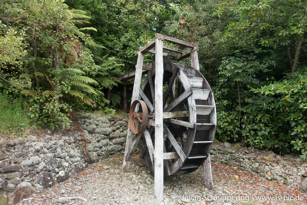 Der Morgen versprach Regen, dunkle Wolken verdeckten den Himmel – perfektes Wetter also für einige Museen. In Ross haben wir ein Freilichtmuseum entdeckt, welches uns mit ins 19. Jahrhundert zu den Goldgräbern genommen hat. Auf einem 1 stündigen Rundweg durch die Hügel und Täler konnte man sich auf den alten Wegen der Minenarbeiter und Goldschürfer einen Eindruck von Früher machen. Es gab alte Minen, Häuser, einen Friedhof, ein altes Wasserwerk , viele Informationstafeln und wunderschöne Aussicht!