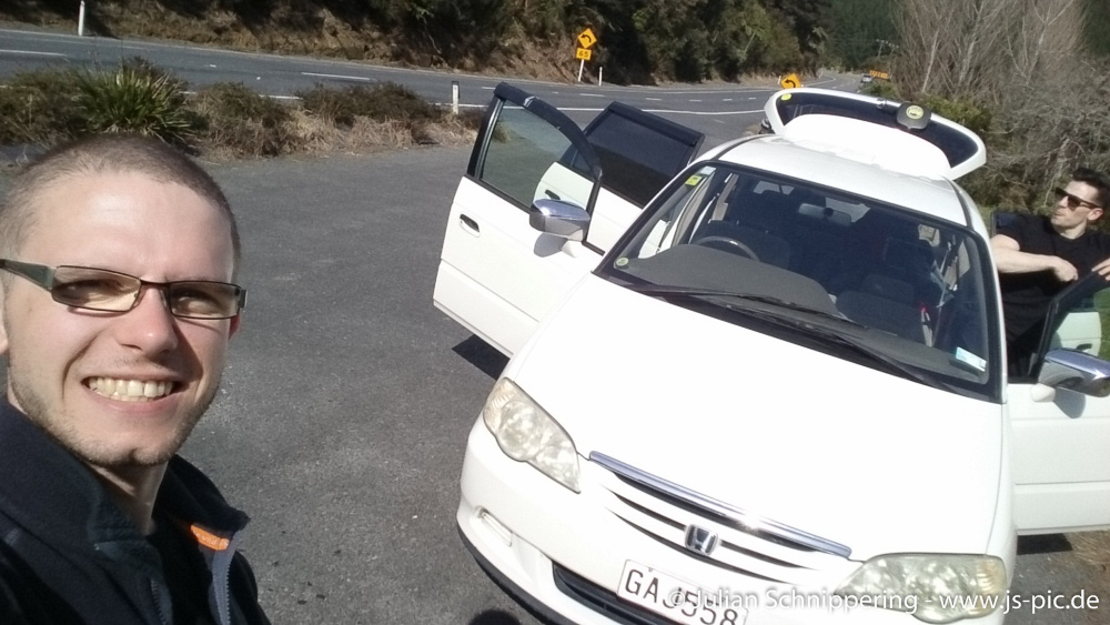 Nachdem ich klar hatte das ich das Auto kriege, habe ich bei mir im Hostel geschaut ob ich jemanden finde, der mit mir eine Weile reisen will. Jetzt habe ich einen mitreisenden (Daniel), Sprit teilen etc. und natürlich ist es zu zweit auch etwas kurzweiliger.