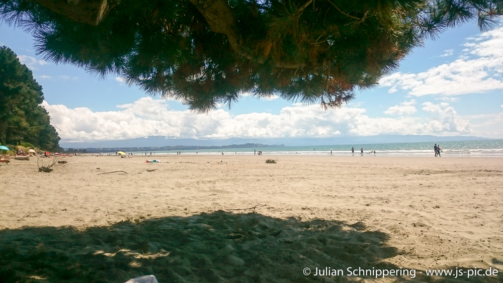 Der Sonntag startete für uns mit ausschlafen und Arbeit am Laptop. Zum Nachmittag hin schrieb unsere Freundin ob wir mit ihr zum Strand nach Rabbit Island kommen wollen – natürlich wollten wir! Die Sonne schien, das Meer war warm und so haben wir einen wundervollen Tag am Strand mit bester Aussicht genossen.