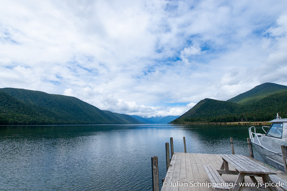 Ursprünglich wollten wir auf einer Kiwiberry Farm arbeiten und hatten 2 Nummern bekommen um uns zu bewerben. Leider haben wir bei beiden nie jemanden erreicht und auch keine Rückmeldung bekommen, desswegen entschieden wir uns am Montag dazu weiter zu fahren. Als ersten Stop haben wir am Lake Rotoroa gehalten, ein wunderschöner See, mit Bergen im Hintergrund.