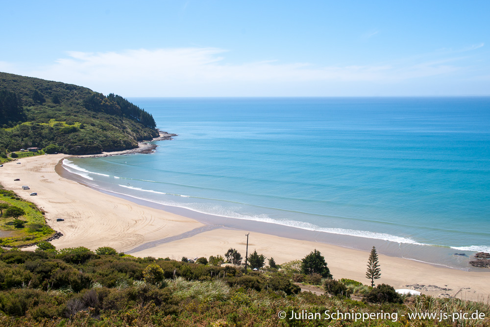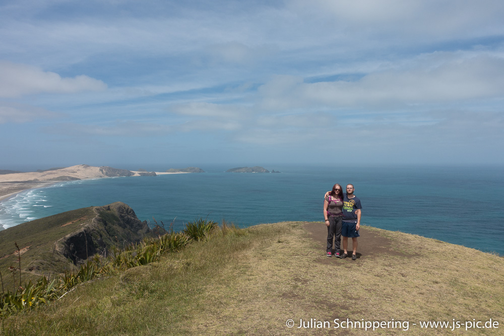 Nachdem wir Sonntag morgen dann vom Campingplatz Tapotupotu ans Cape Reinga gefahren sind, haben wir am Cape bei traumhaftem Wetter ca. zwei Stunden verbracht. Sind etwas Richtung Strand gewandert. Haben die Steilküste bewundert und natürlich haben wir auch am Leuchtturm gestanden und haben das klassische Touristenfoto vorm Turm gemacht.