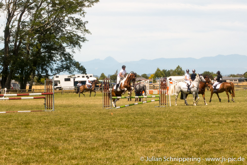 Am Sonntag hatten wir unseren „freien Tag“. Anstelle auf dem Reitplatz Unkraut zu jäten, hat Julian beim Bäume stutzen geholfen und gelernt, wie man Quad mit Anhänger fährt, Kate und ich waren während dessen auf einem Turnier als Turnierhelfer. Am Springplatz haben wir den Einlass geregelt und ich durfte mich um Kates Pferd kümmern, nachdem es erfolgreich seine gelbe Schleife bekommen hat (3. Platz).