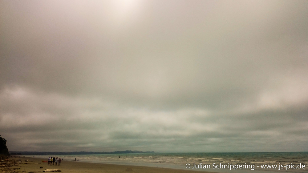 Am Nachmittag hat uns Kate zur Rabbit Island mitgenommen und den Strand gezeigt. Obwohl es stark bewölkt war, konnte man die schöne Berglandschaft in der Ferne bewundern.