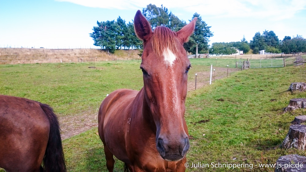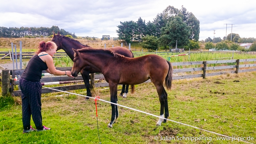 Den Nachmittag haben wir damit verbracht uns mit dem Pferden anzufreunden, mit dem Fohlen zu spielen und Kate und Ricky kennen zu lernen. Am Abend hat uns Kate unsere Arbeitsaufträge für den nächsten Tag gegeben und nach einem hervorragenden Abendessen sind wir müde ins Bett gefallen (das erste Bett seit 2 1/2 Monaten).