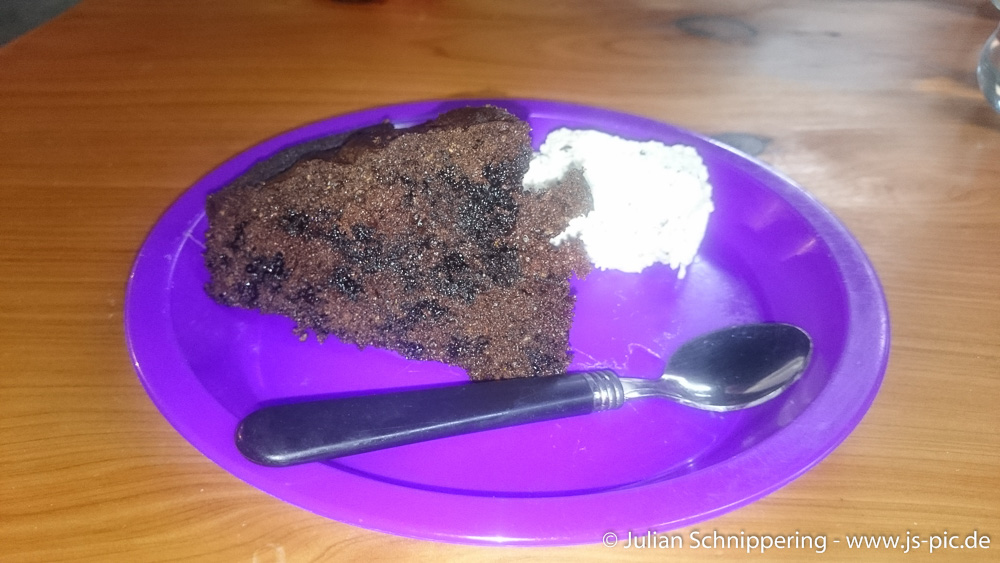 Abends gab es leckeren Schokoladenkuchen von Ronja und Matze zum baldigen Abschied.