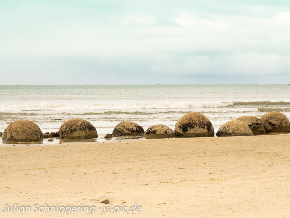 Die Moeraki Boulders haben uns ca. 30 Minuten Zeit gekostet mit parken und hinlaufen, Fotos machen, zurück zum Parkplatz laufen.
