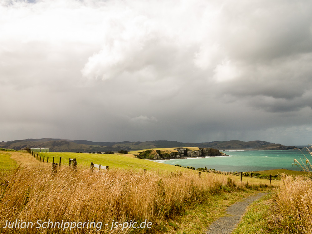 Der Weg zu Jacks Blowhole geht über einen kleinen, teilweise sehr schlammigen, schmalen Pfad und hat dank 2er Hügel die man überqueren muss, echt eine hervorragende Aussicht aufs Meer.