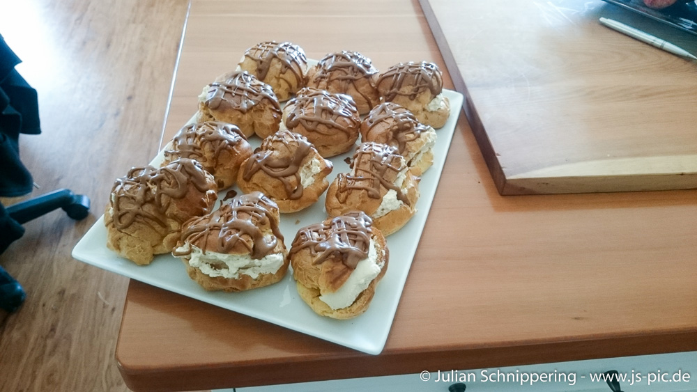Um 15 Uhr waren unsere Host zum Ostern-Kaffee eingeladen, und Kate hatte diverse Backideen umzusetzen. Natürlich habe ich ihr geholfen und zusammen haben wir gefüllte Windbeutel produziert.
