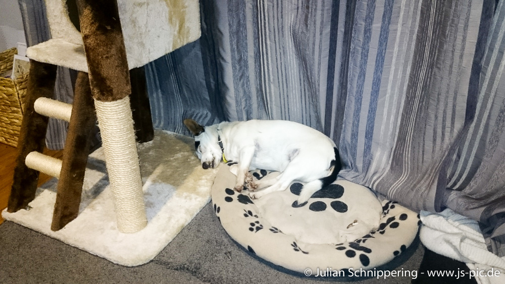 | Bella träumt, nachdem wir ihre Krallen Maniküre erledigt haben. |