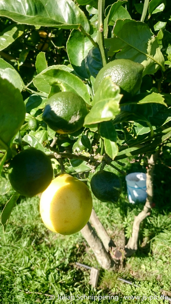 | Zitronen & Babyzitronen am Baum, hier in Nelson das ganze Jahr über möglich. |