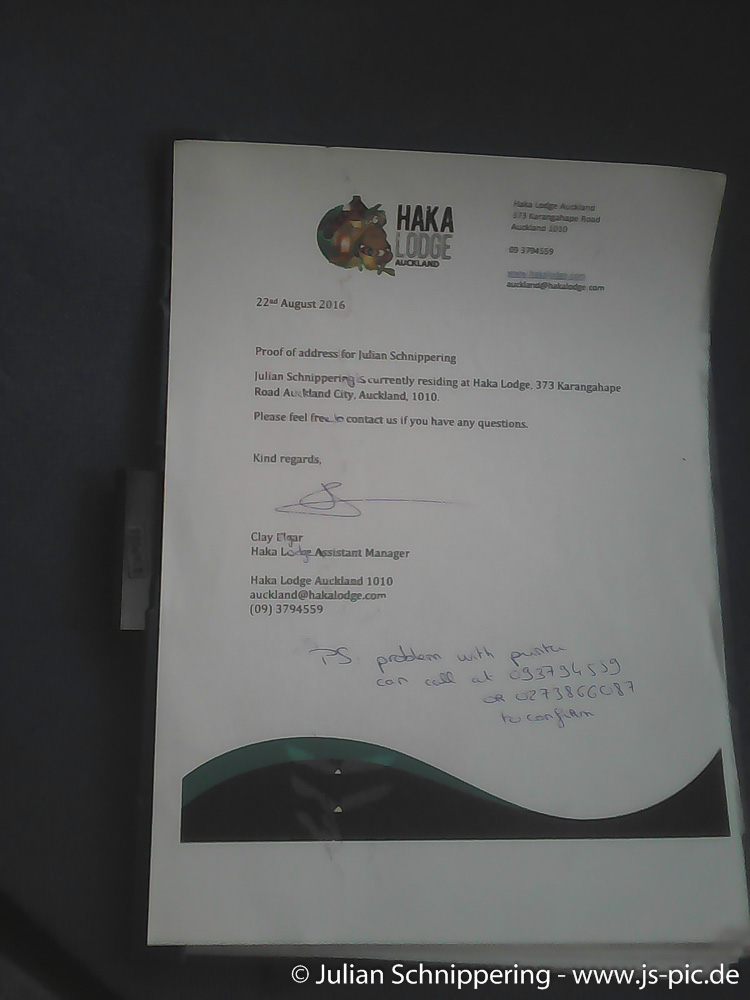 Das Schreiben benötigst du eigentlich nur zwei mal, einmal für das erstellen eines Bankkontos und zum zweiten mal beim beantragen der IRD (Neuseeländische Steuernummer).