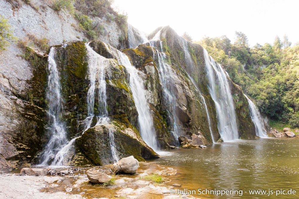 Weiter ging es durch wunderschöne Landschaft zu den Waihi Falls. Ein kurzer 10 minütiger Walk führt an die beeindruckend schönen Wasserfälle.