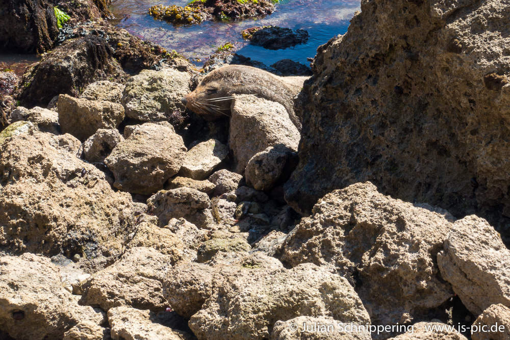 Nachdem wir alle 3 uns wieder etwas gefasst hatten, haben wir unseren Weg fortgesetzt. Leider haben wir den Eingang nicht gefunden, wir vermuten, dass er durch einen Erdrutsch verschlossen wurde. Auf dem Rückweg haben wir dem Seehund noch etwas beim sonnen zugesehen.