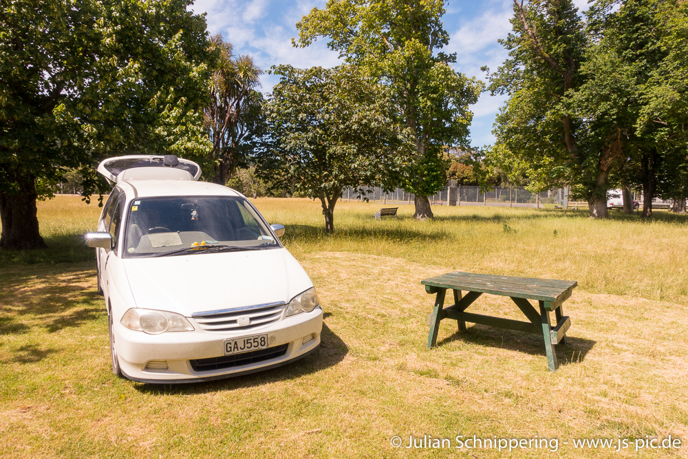 Zum Abend hin haben wir den „Lake Wairarapa Domain Camping“ angesteuert. Dank starkem Wind (wirklich starkem! Wind) haben wir gemütlich im Auto gesessen und die Zeit genutzt um erneut nach Arbeit zu suchen. Die Ausläufer des Sturmes hatten glücklicherweise keinen Einfluss auf den Sonnenuntergang, sodass wir diesen in seiner vollen, roten Pracht bewundern konnten!