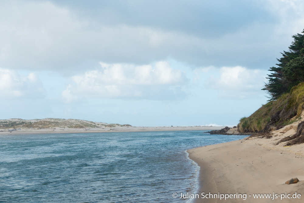 Da der Free-Spot der Parkplatz zu einem Walk war, haben wir gleich am Morgen unsere Wandersachen gepackt und sind aufgebrochen zum Smugglers Cove-Busby Head Loop Track. Er führte uns über eine Kuhwiese, vorbei an einem Bunker des zweiten Weltkriegs und durch schöne Wälder, Wiesen und Strand. Man hatte eine hervorragende Sicht auf das Meer, den Strand und die vielen kleinen und großen Schiffe die im nahe gelegenen Hafen lagen.
