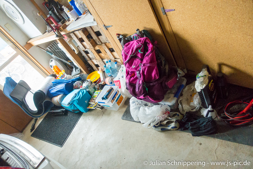 Auch am Mittwoch hielt der Regen an. Anstelle der 8L, die in 6 Stunden fallen sollten, regnete es über den Tag zum Glück viel weniger. Trotzdem haben wir den Tag überwiegend drinnen verbracht. Wozu eignen sich solch verregneten Tag auch besser, als zum Putzen? Also haben gesaugt, unser Auto von innen geputzt, unsere Wäsche gemacht und aufgeräumt.